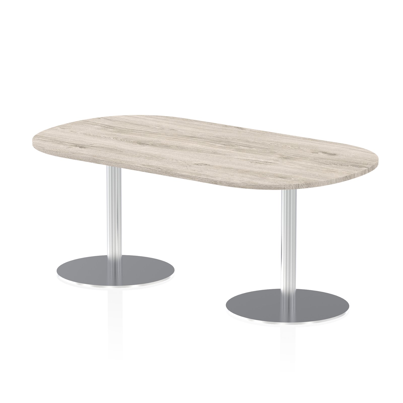 Make a bold style statement in meetings, conferences, boardrooms, or dining areas with the Italia Boardroom Table. Featuring a sleek, heatproof melamine worktop with clean lines, this table offers easy maintenance and lasting durability. The striking brushed steel trumpet base and post design in silver not only add modern elegance but also eliminate any knee and leg traps, ensuring user comfort.