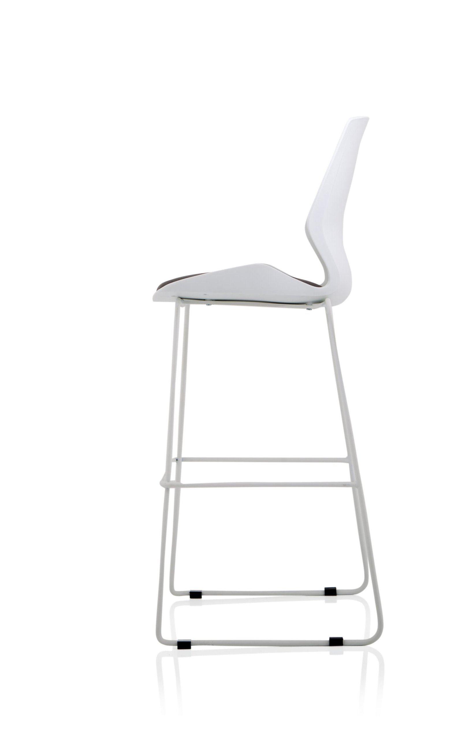 The Florence High Stool Chair offers a sleek, contemporary design ideal for modern, dynamic office spaces. Featuring a stylish white shell frame and comfortable slate grey fabric upholstery, this high stool provides ergonomic support with its shaped backrest designed to promote healthy posture. Equipped with floor protection feet, it combines both style and practicality for hardworking environments.