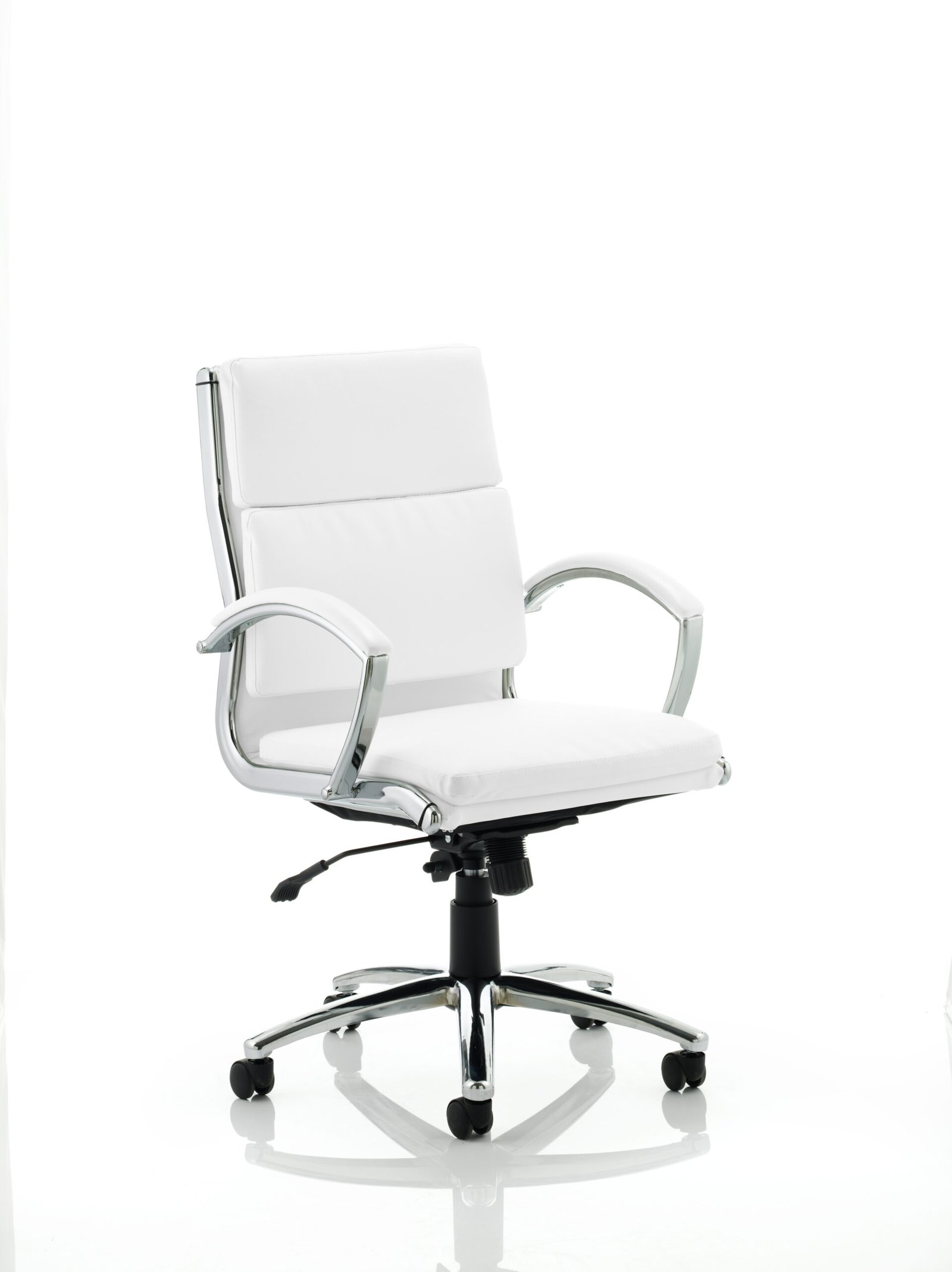 Elevate your workspace with the stylish and comfortable Classic Executive Office Chair. This contemporary range offers versatile options including high back, medium back, and visitor chairs, all available in black, tan, or white bonded leather upholstery. Designed with generous, deeply padded seating and elegant chrome accents, the Classic chair ensures all-day comfort and timeless sophistication.