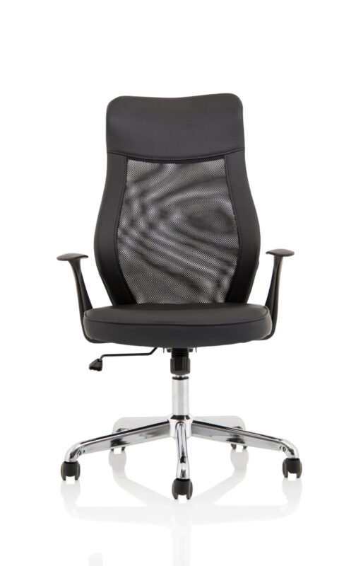Baye High Mesh Back Task Operator Black Leather Office Chair with Arms