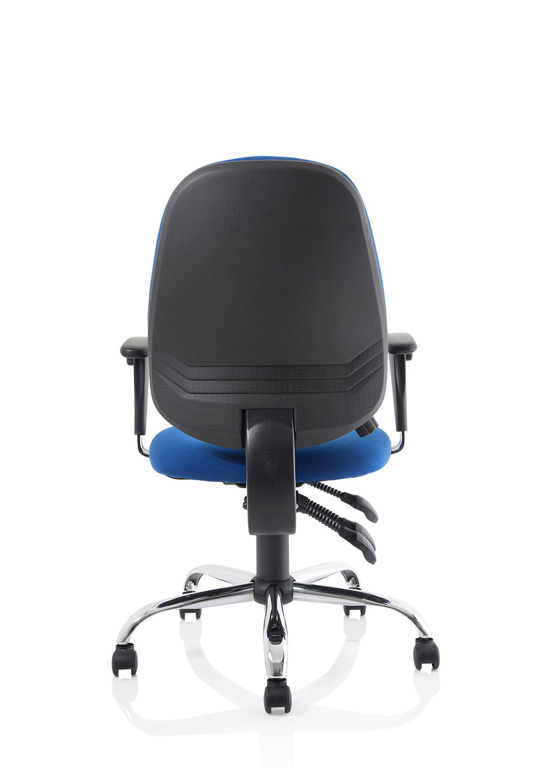 Equipped with a triple-lever independent mechanism, the Lisbon chair allows full control over seat height, tilt, and backrest angle. Its height-adjustable ratchet back and twist-adjustable lumbar support offer a tailored fit for each user, while the optional seat slide enhances leg support. Finished with height-adjustable padded arms and a polished chrome 5-star base, this chair delivers both functionality and contemporary style.
