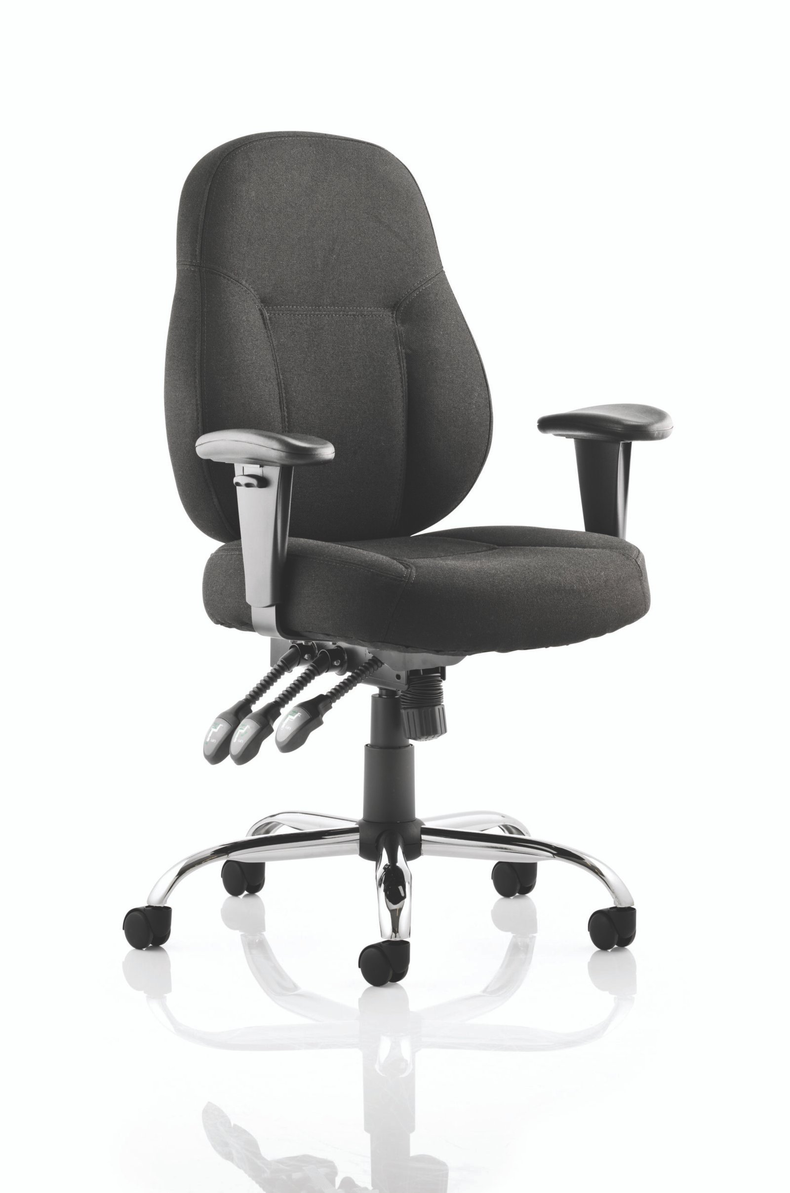 With a triple lever mechanism offering independent seat and back angle adjustments, a ratchet height-adjustable backrest, and height-adjustable soft PU arms, the Storm is built for tailored comfort. Finished with a stylish chrome 5-star base, this chair is ideal for busy professionals seeking performance and refinement.