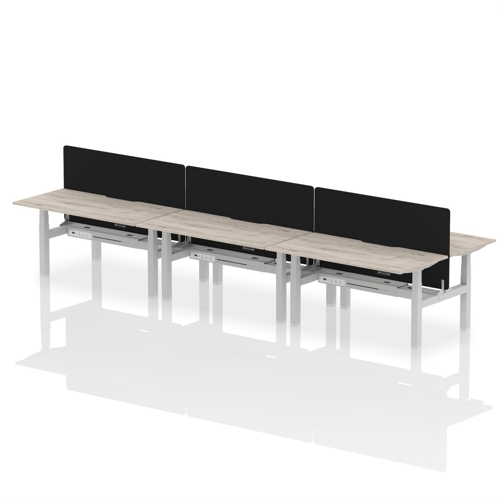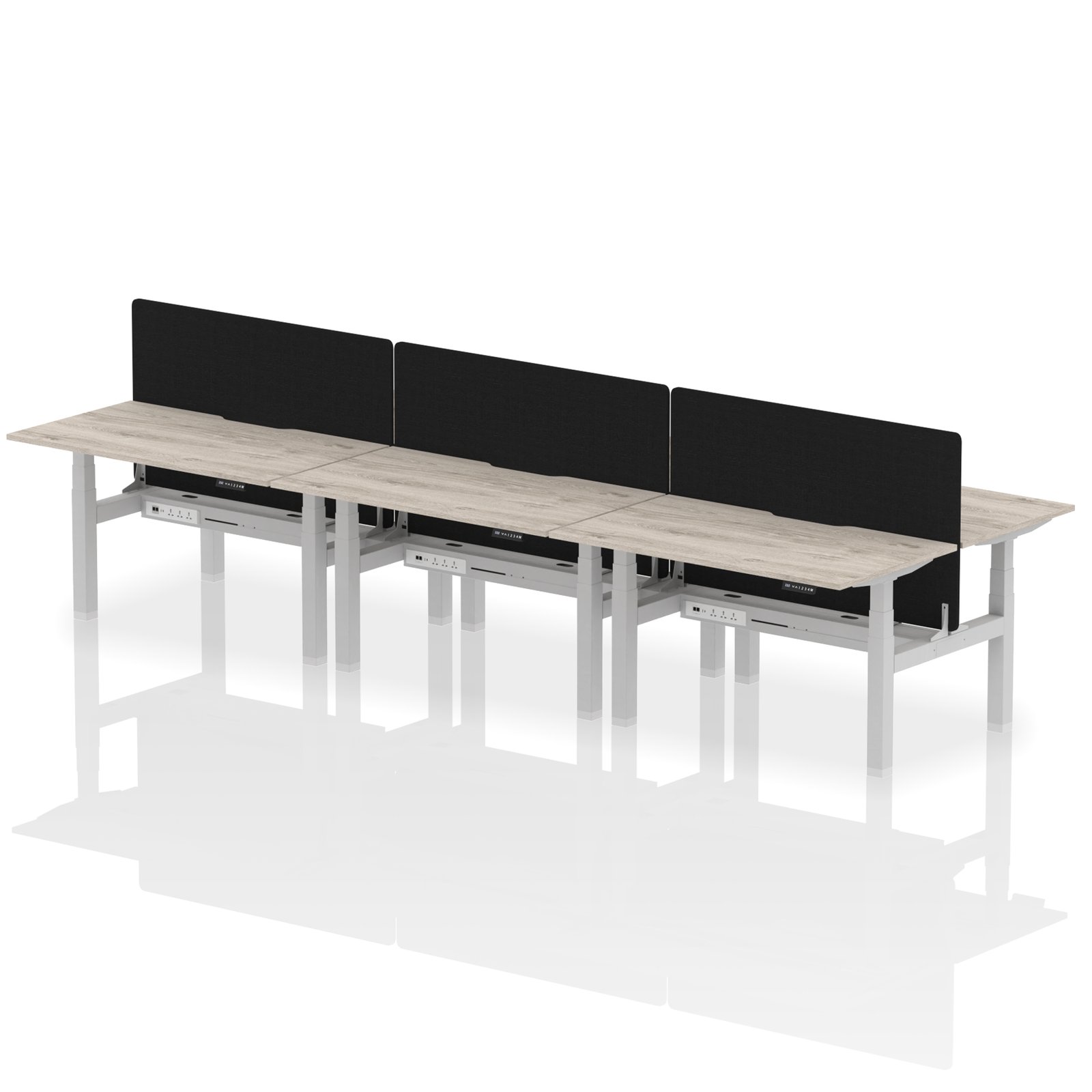 Air Back-to-Back Scalloped Edge Height Adjustable Bench Desk – 6 Person with Black Straight Screen