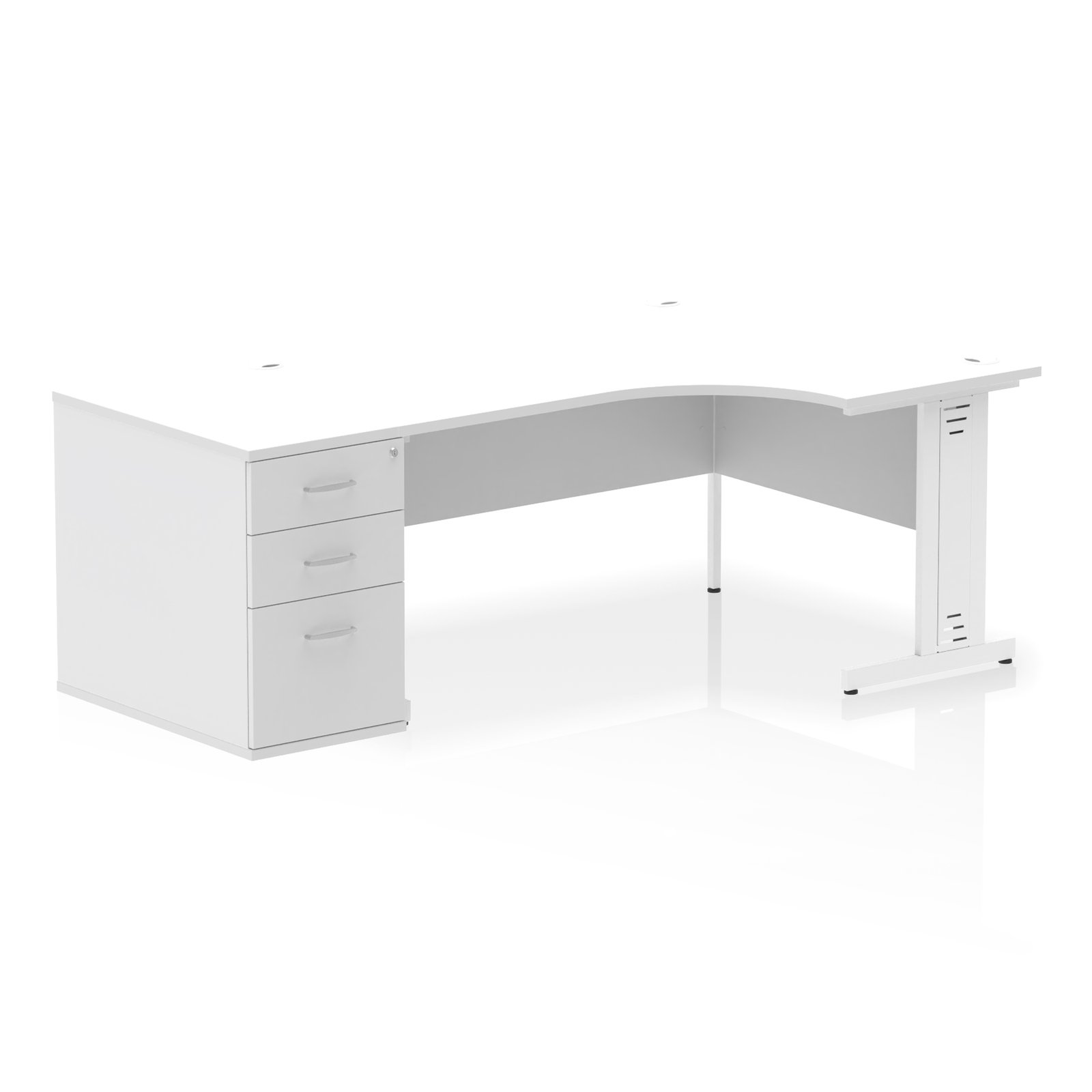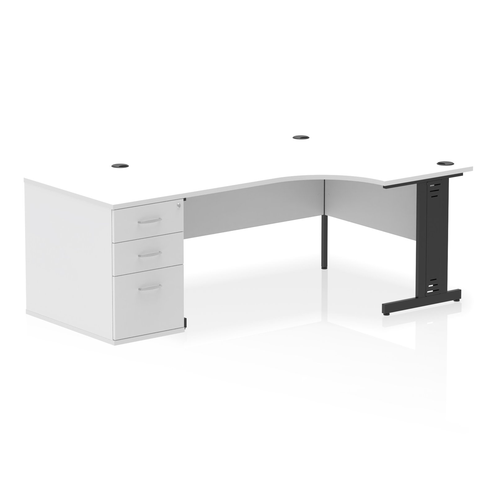 Maximise your workspace with the Impulse 1600mm Right Crescent Desk Workstation, expertly designed to deliver exceptional value, durability, and smart functionality for today’s modern office. This high-performance desk combines a spacious crescent work surface with integrated cable management and a fixed pedestal for all-in-one practicality.