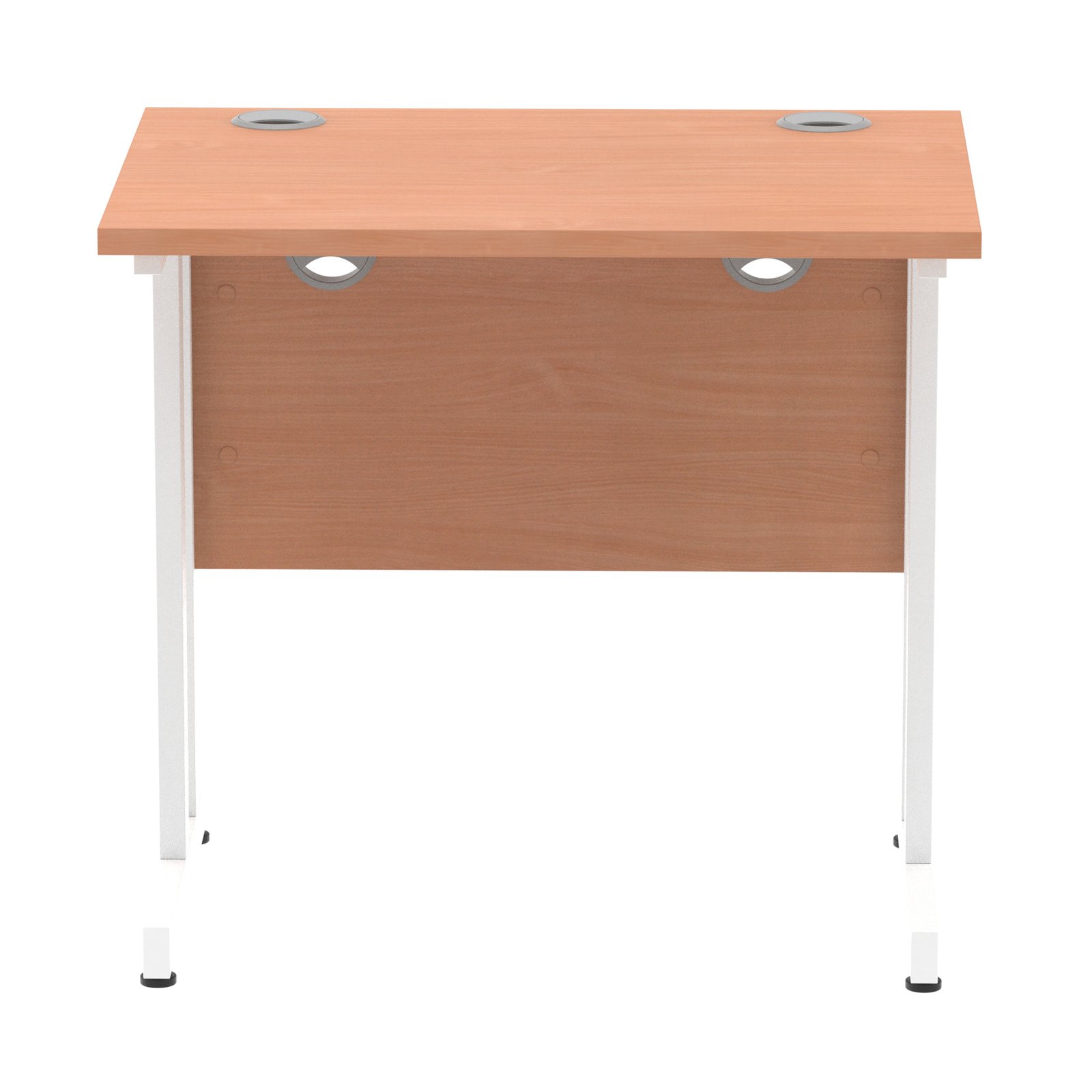 Featuring a robust 25mm heat-resistant melamine top, silver-coated double strut cantilever legs, and a clean, professional finish, this desk supports efficient cable management and ergonomic stability.