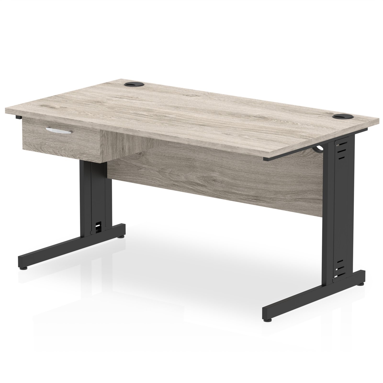 Impulse Cantilever Straight Desk Black Frame With Single One Drawer Fixed Pedestal