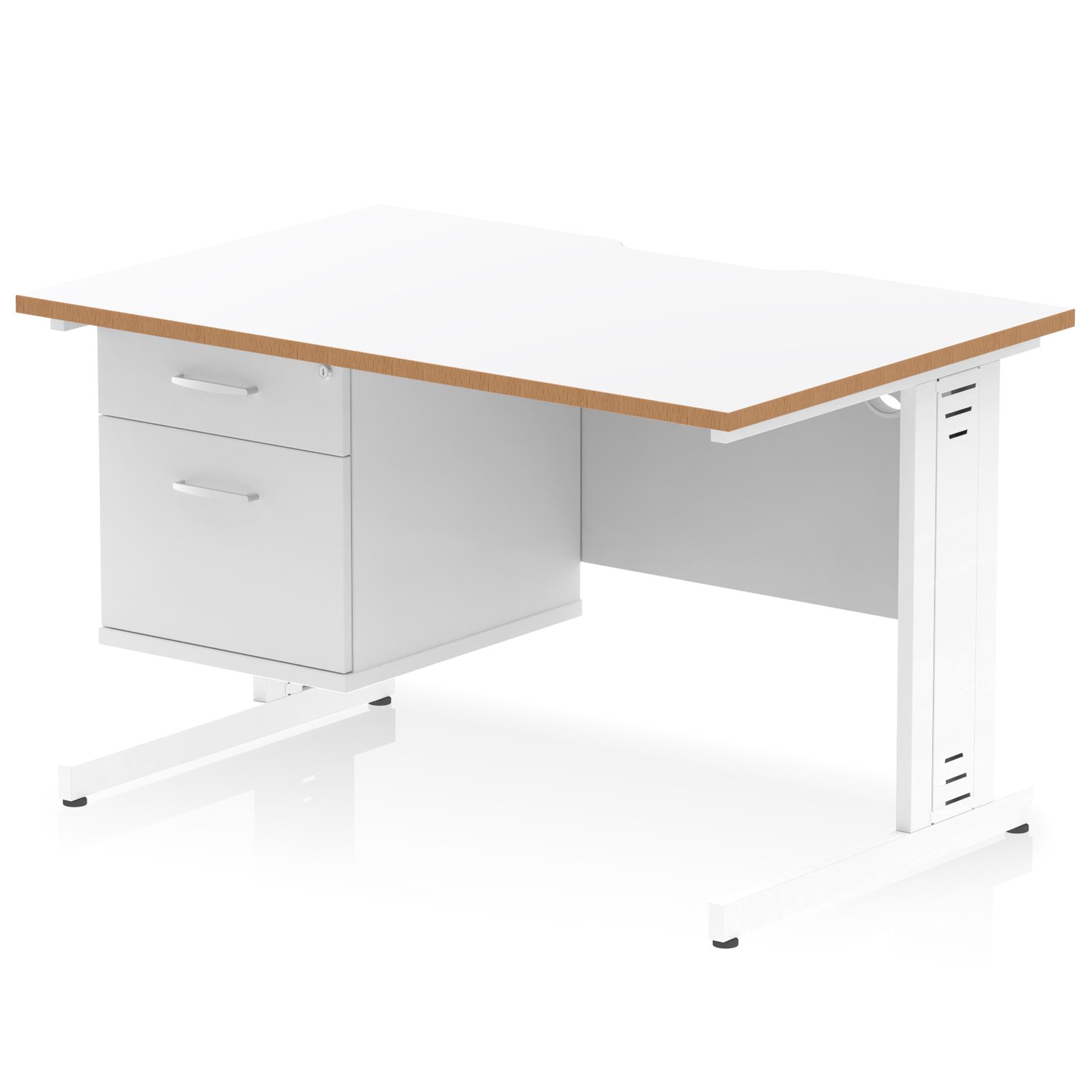 Impulse Cable Managed Straight Desk White Frame With Two One Drawer Fixed Pedestals