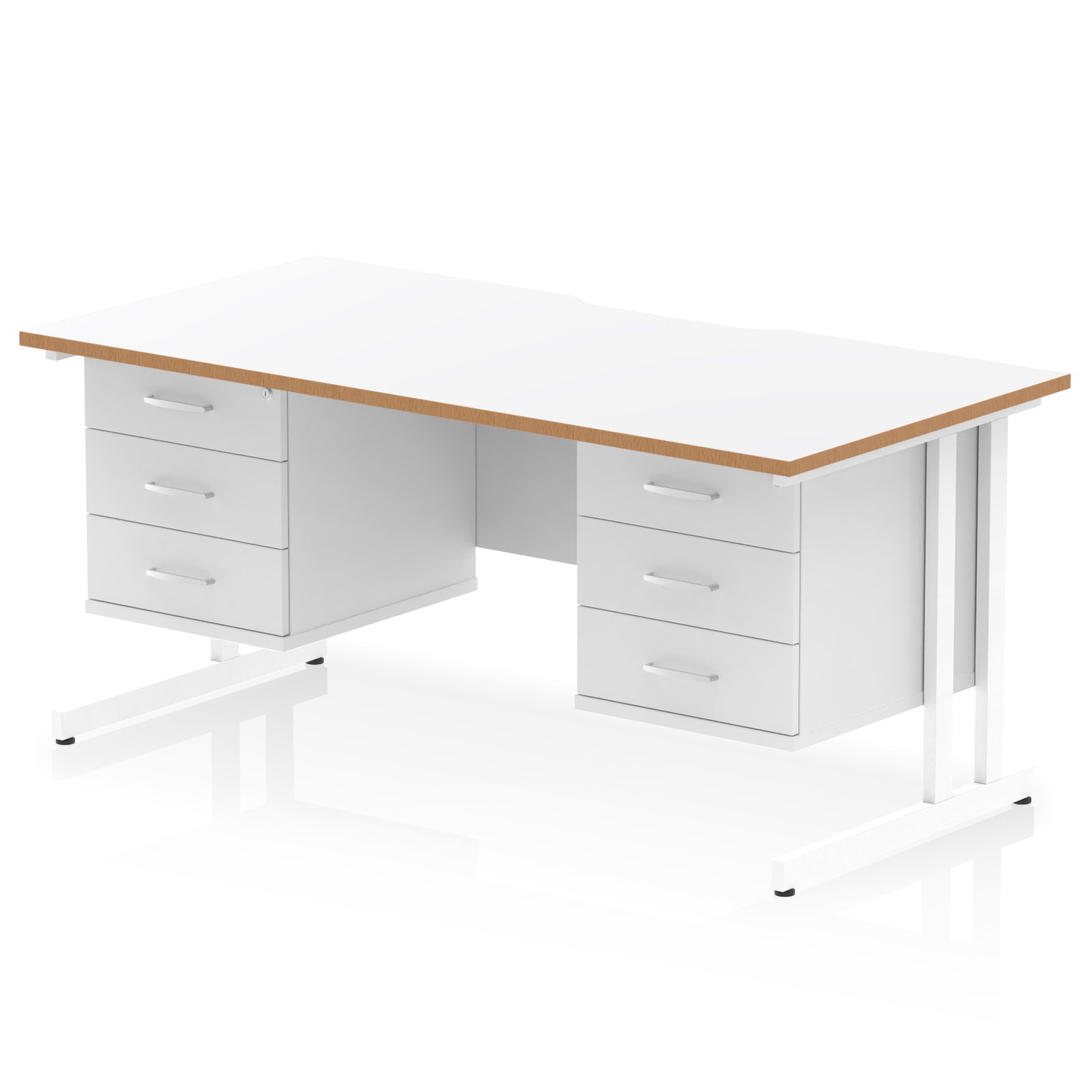 - 1600mm wide cantilever straight desk with two fixed pedestals