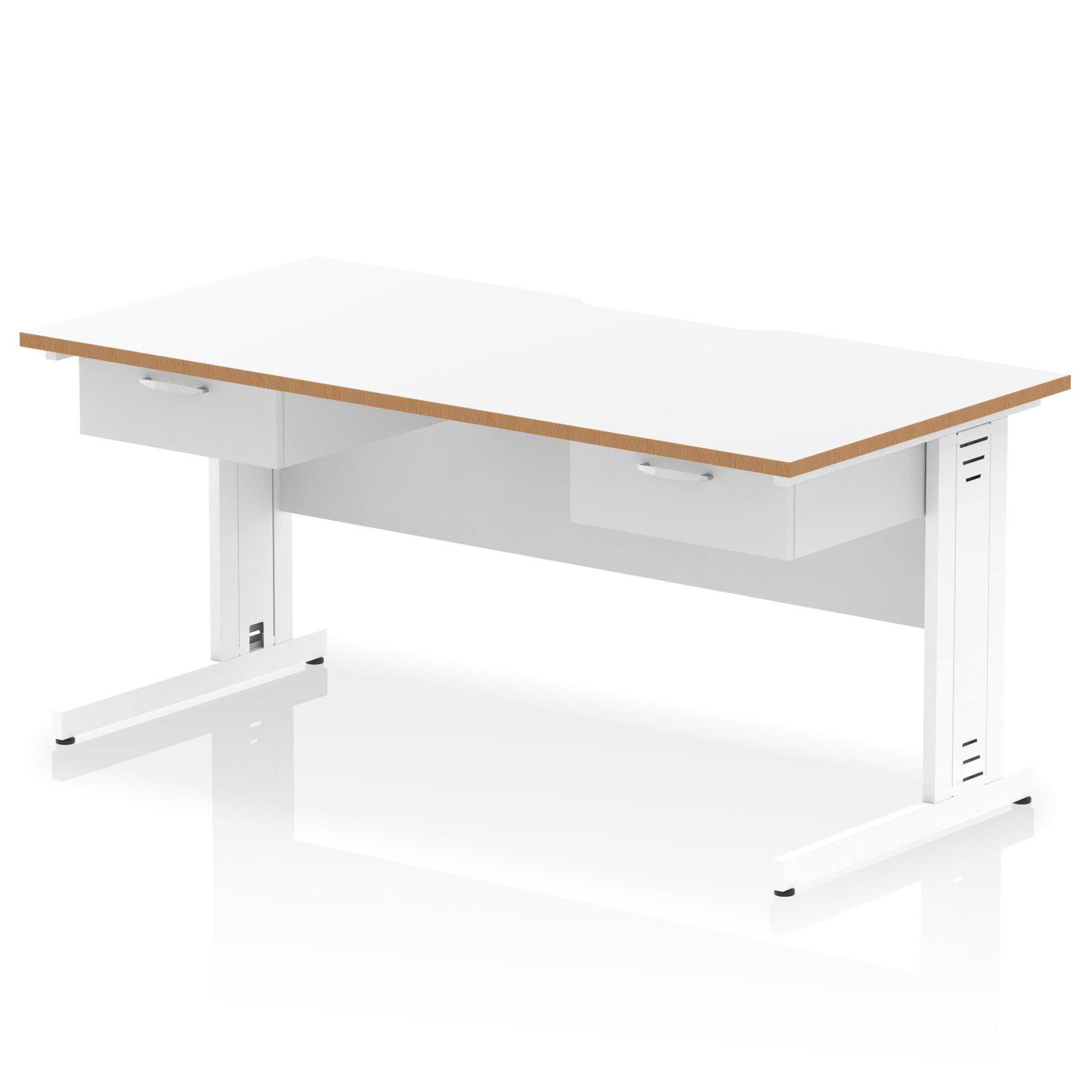 Impulse Cable Managed Straight Desk White Frame With Two One Drawer Fixed Pedestals
