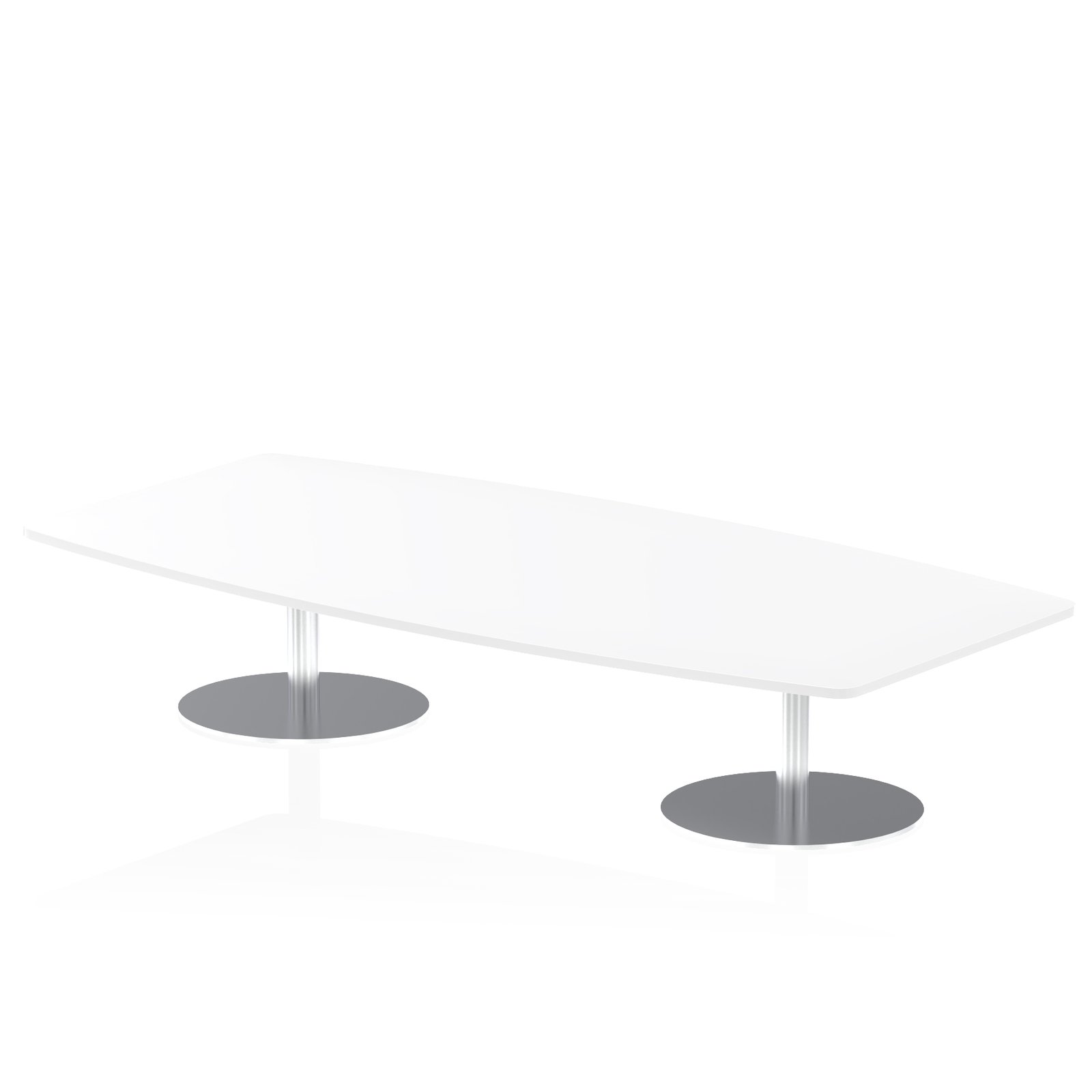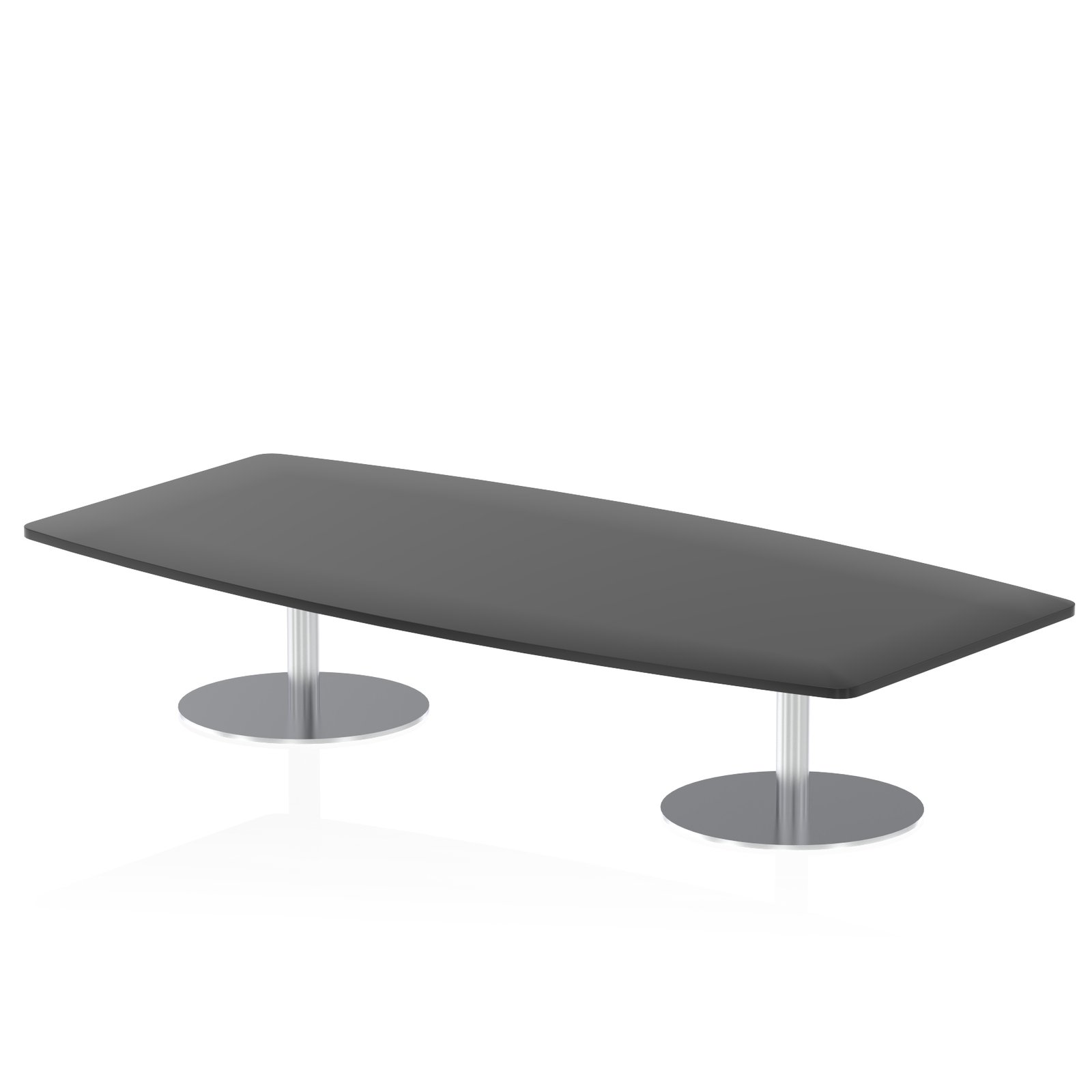 Make a bold style statement in meetings, conferences, boardrooms, or lounge areas with the Italia High Gloss Boardroom Coffee Table. Featuring a stunning writeable and wipe-clean hi-gloss boat-shaped top, this table combines functionality with sleek modern design. The brushed steel trumpet base and post design provide a striking look while eliminating any knee and leg traps for maximum comfort.