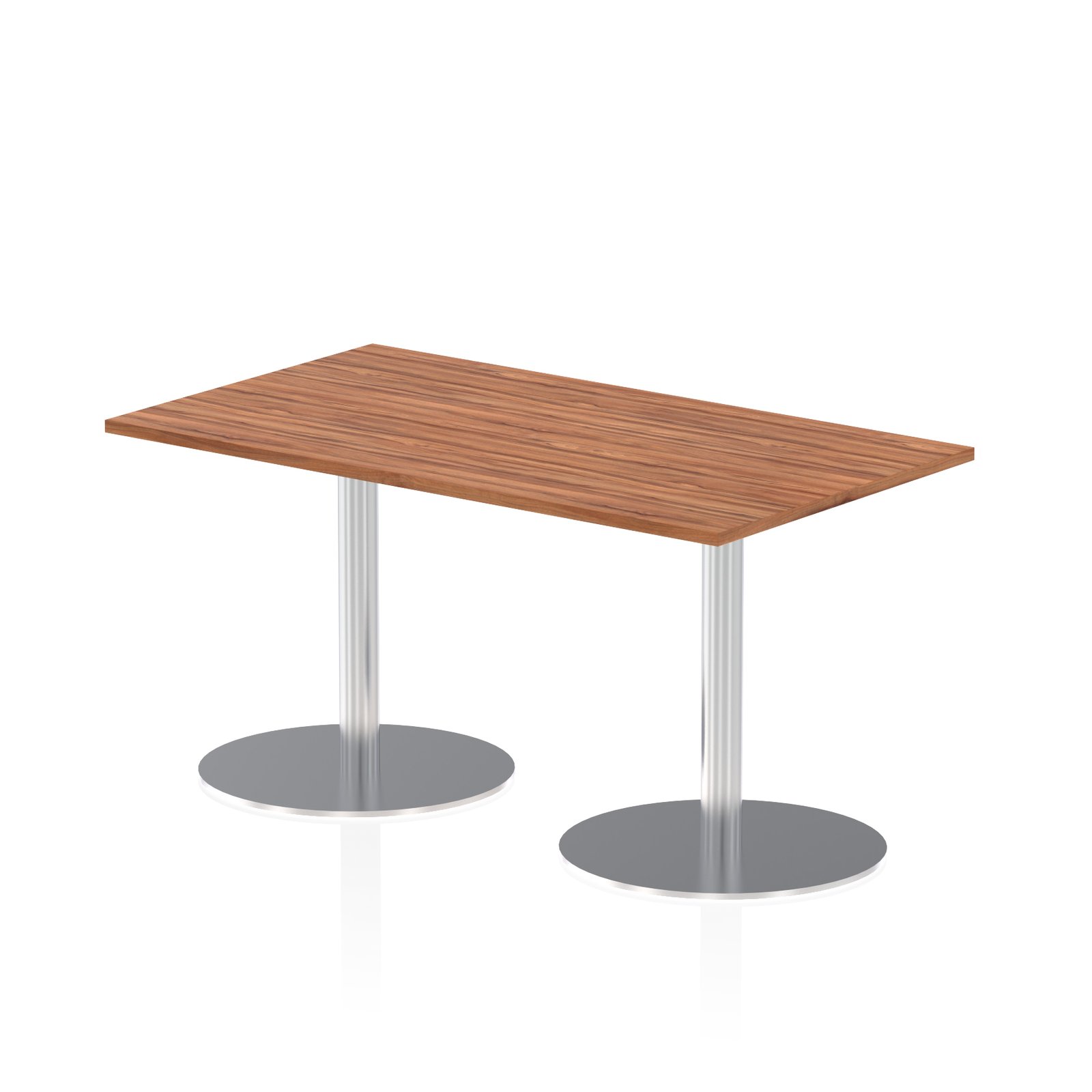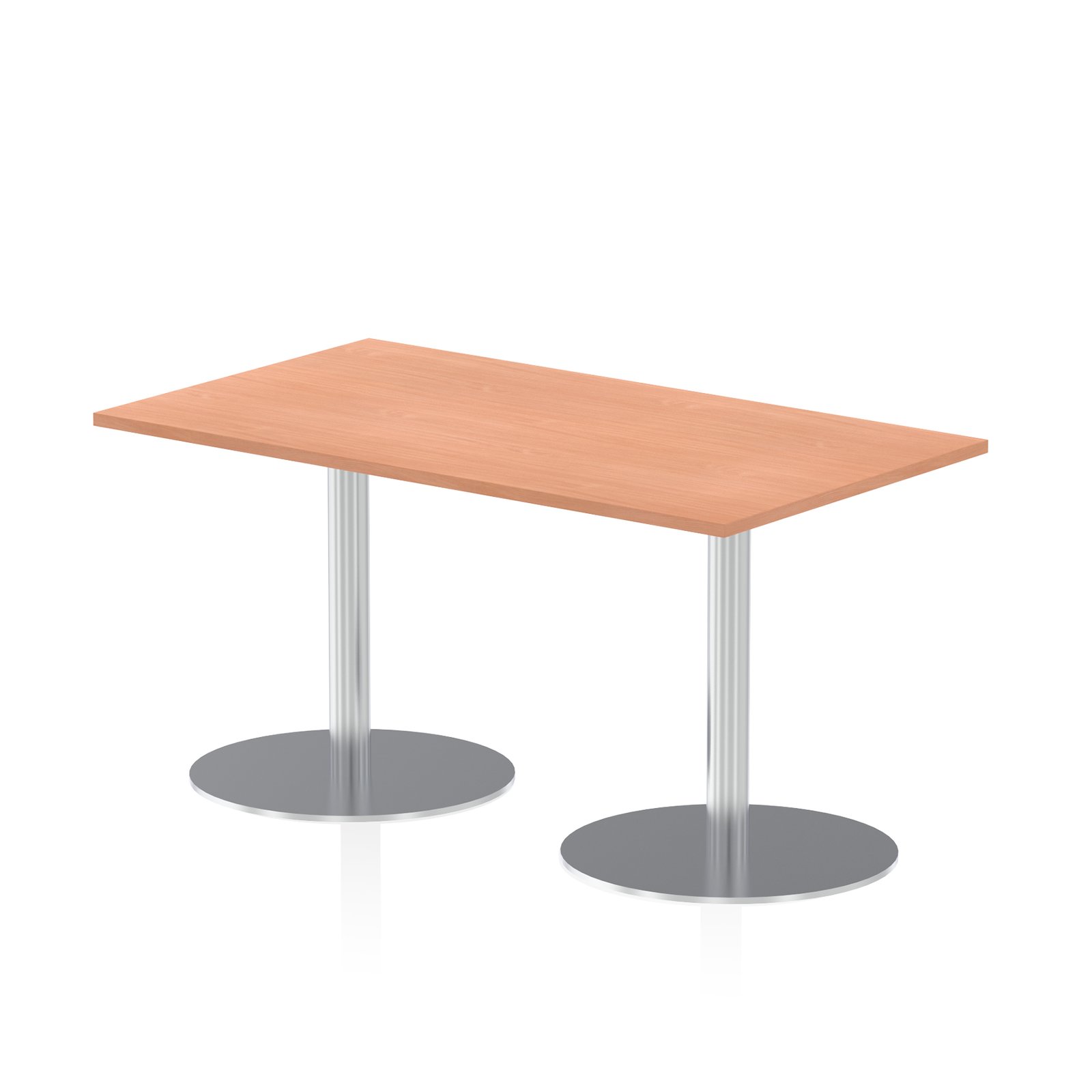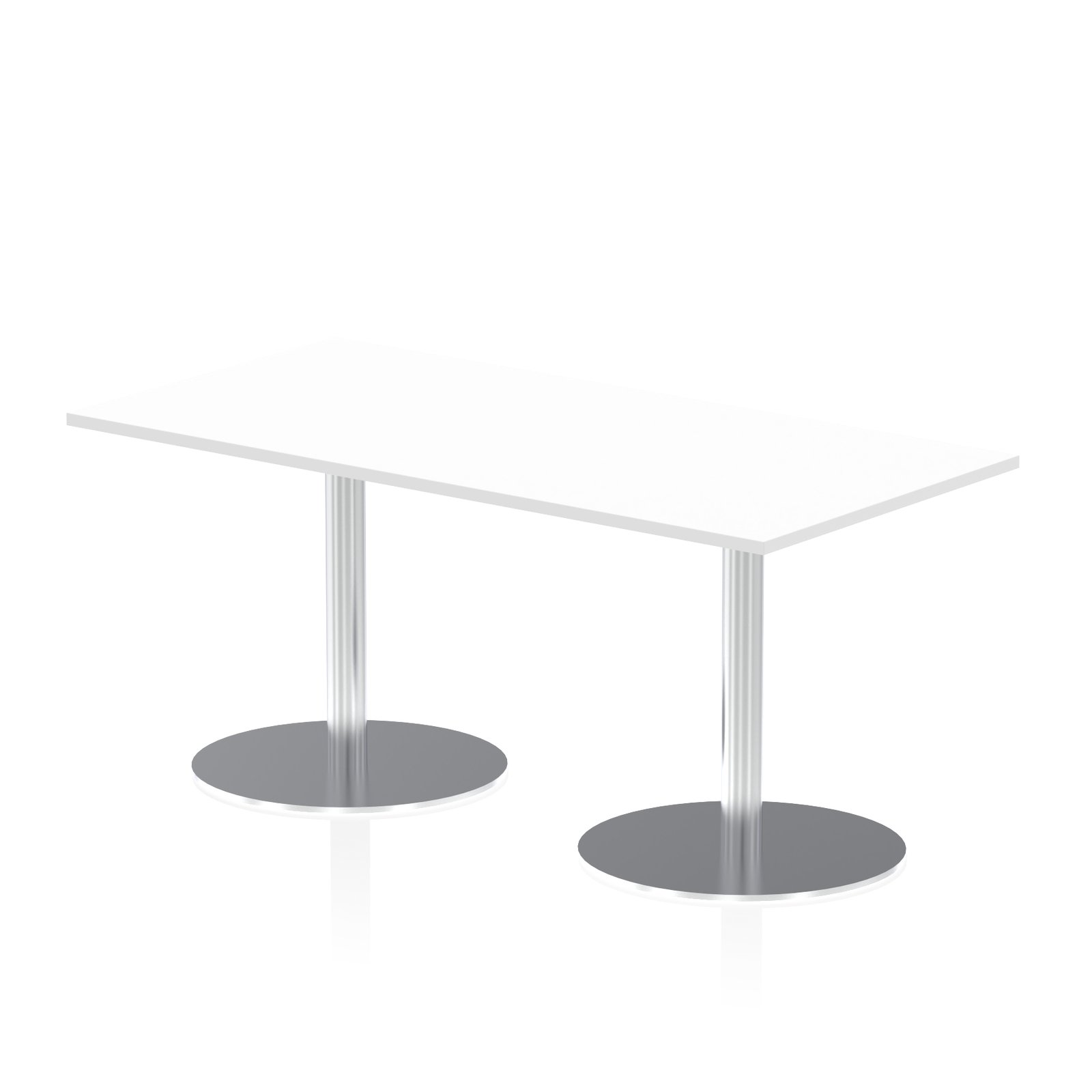 Elevate your space with the Italia Rectangular Poseur Table, the perfect blend of style and functionality for meetings, conferences, boardrooms, or dining areas. Featuring a heatproof, sleek melamine worktop with clean lines that require minimal maintenance, this table is as practical as it is striking. The brushed steel trumpet base and post design offer a modern look while eliminating knee and leg traps for enhanced comfort.