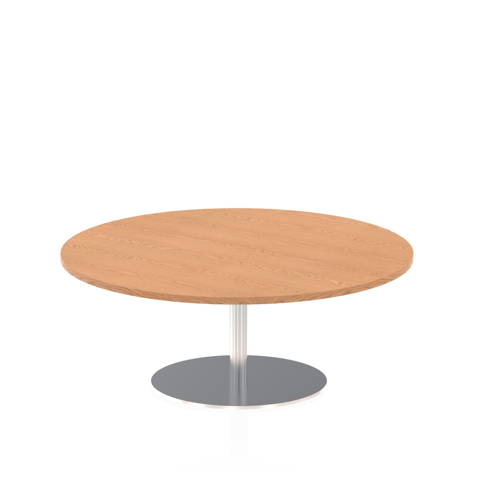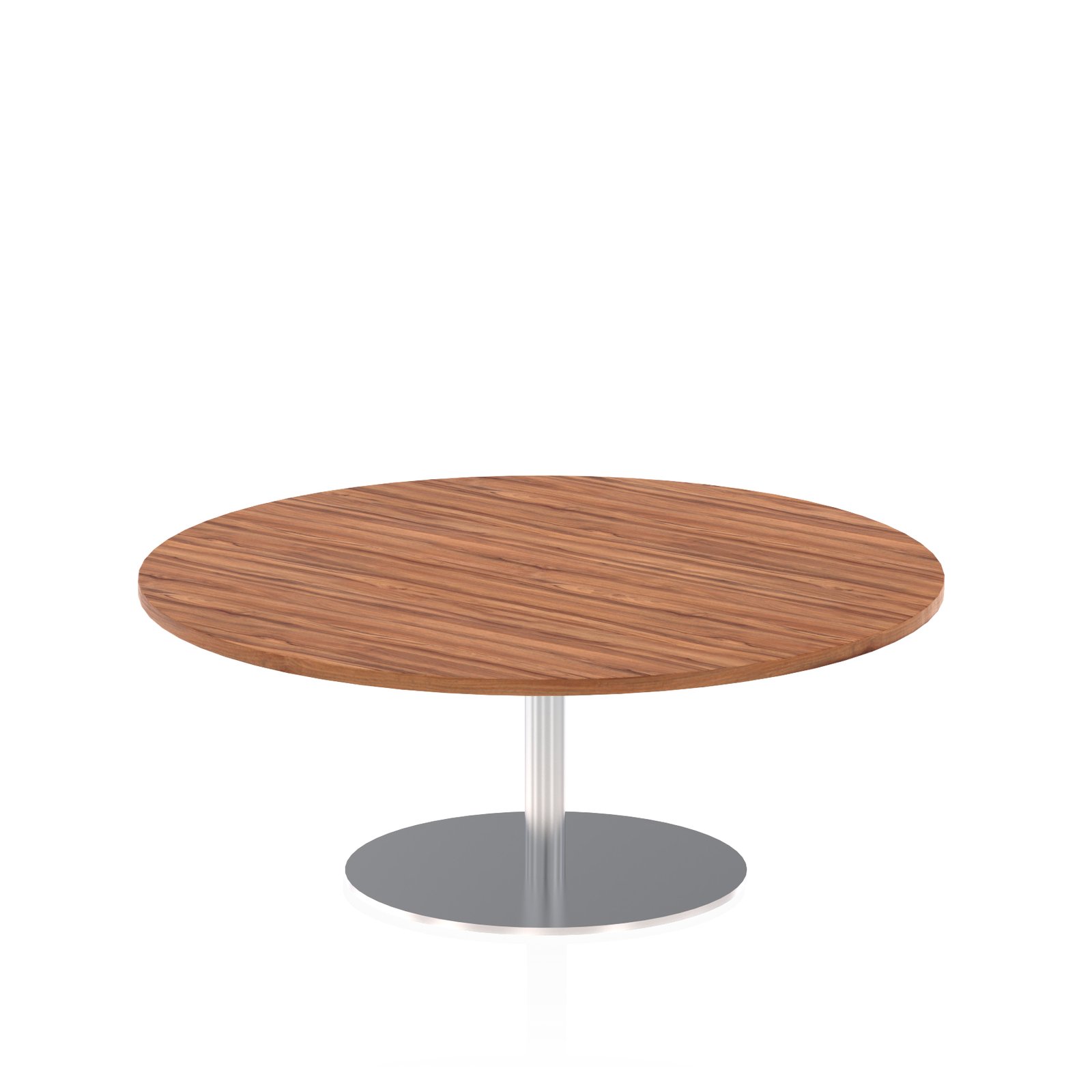 Make a sophisticated style statement with the Italia Round Coffee Table, perfect for meetings, lounges, boardrooms, or dining areas. Featuring a sleek, heatproof melamine top with clean lines that require minimal maintenance, this table combines elegance with practicality. The brushed steel trumpet base and post design provides a striking look while eliminating knee and leg traps for maximum comfort.