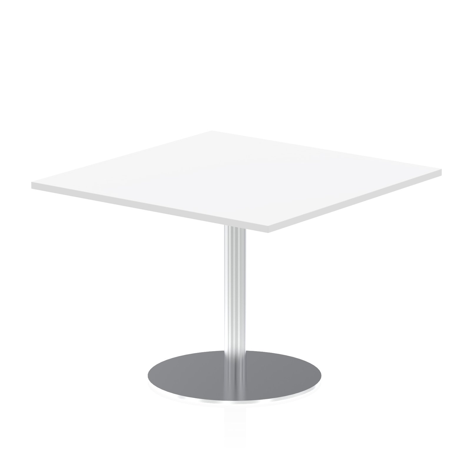 Make a striking style statement with the Italia Square Poseur Table, ideal for meetings, conferences, boardrooms, or dining areas. It features a sleek, heat-resistant melamine worktop with clean lines that’s easy to maintain. The brushed steel trumpet base and posts in silver finish provide a contemporary look while eliminating knee and leg traps for added comfort and practicality.