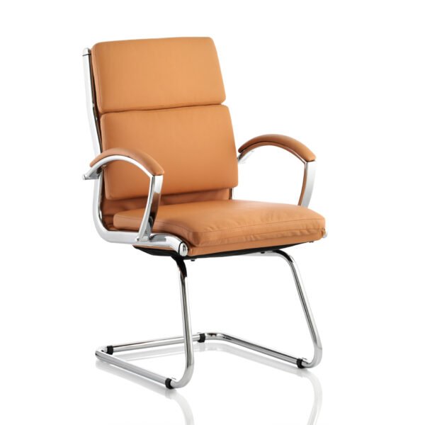Desire Medium Back Leather Cantilever Visitor Chair with Arms
