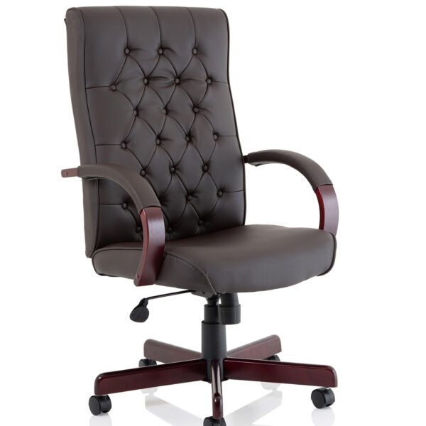 Chesterfield High Back Leather Executive Office Chair with Arms